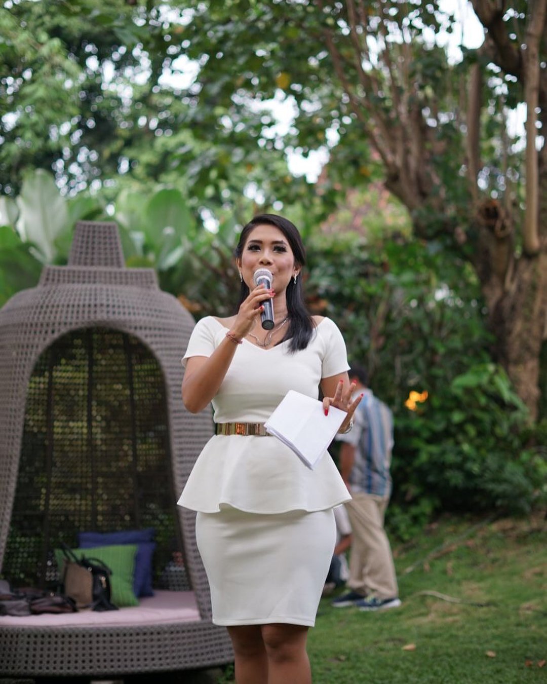 Starting her professional career as MC in Bali since 2007, she has been selected to host various national and international events in Bali and Indonesia. Master of Ceremony for wedding, Gala Dinner, MICE Event, Birthday, Concerts, Sport Event, ect. Regarding her achievements in education, she holds a cum laude of master degree majoring in English Teaching and Learning, that makes her became host of some events that organized and attended by Governor, Ministers, national and international corporate events.